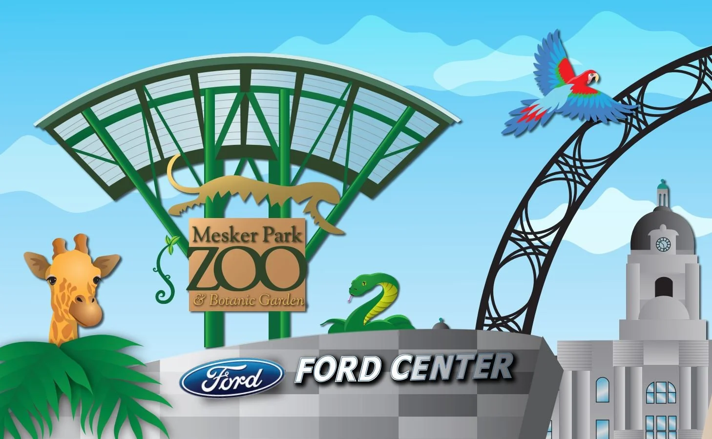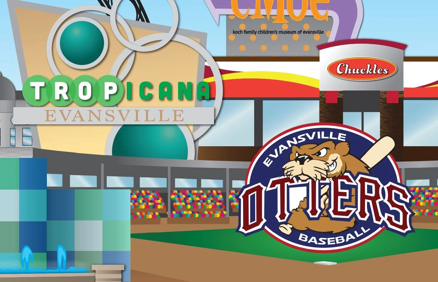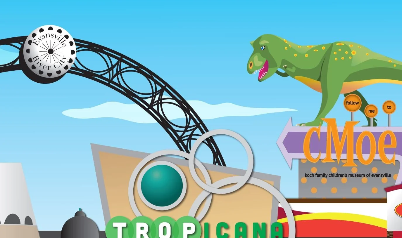 I was jointly commissioned to design a large-scale mural currently on display at a local business. This mural is approximately 9ft. by 18ft. It was created using Adobe Illustrator. We communicated with the client to determine which Evansville area landmarks were to be included, and how they were to be portrayed.